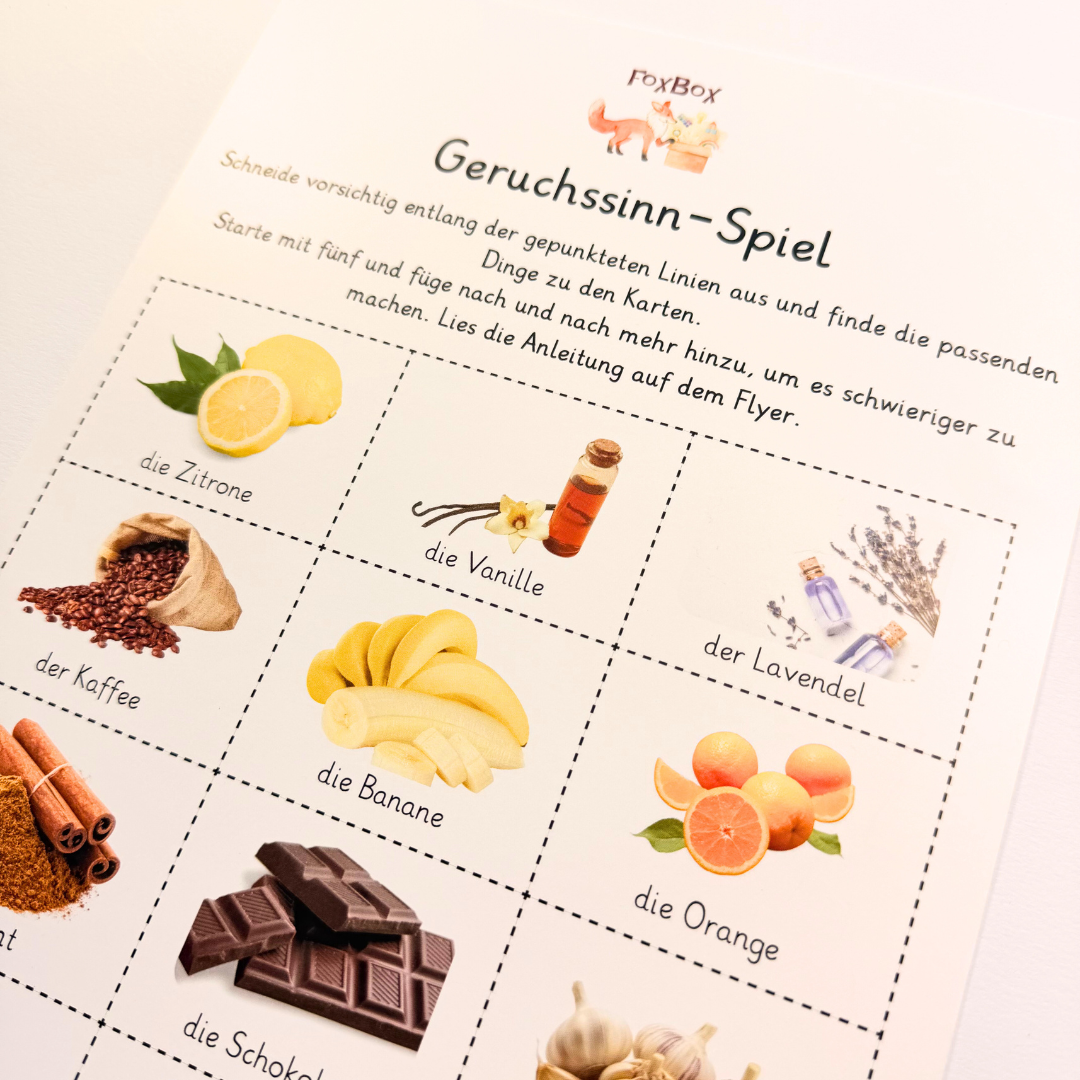 Die Februar-FoxBox lädt Kinder dazu ein, ihre Umwelt bewusst wahrzunehmen und spielerisch zu erforschen 💛.